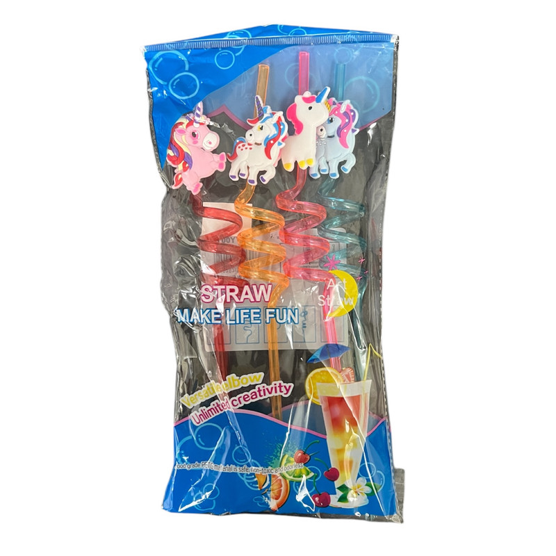 نی نوشیدنی یکبار مصرف مدل یونیکورن بسته 4 عددی
