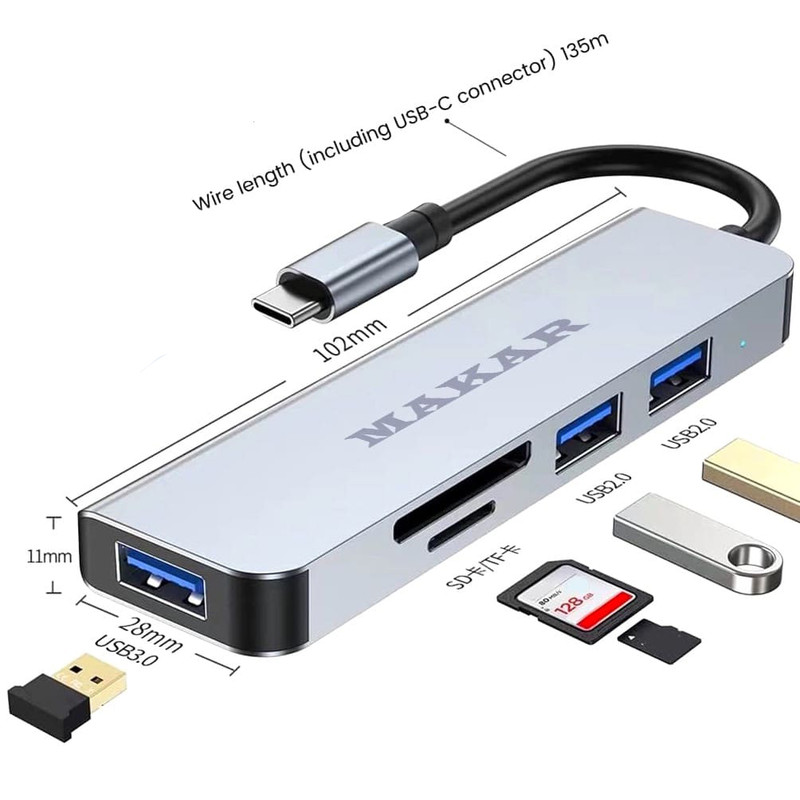 هاب و کارت خوان 5 پورت USB-C ماکار مدل 5in1 MK-HU235-C