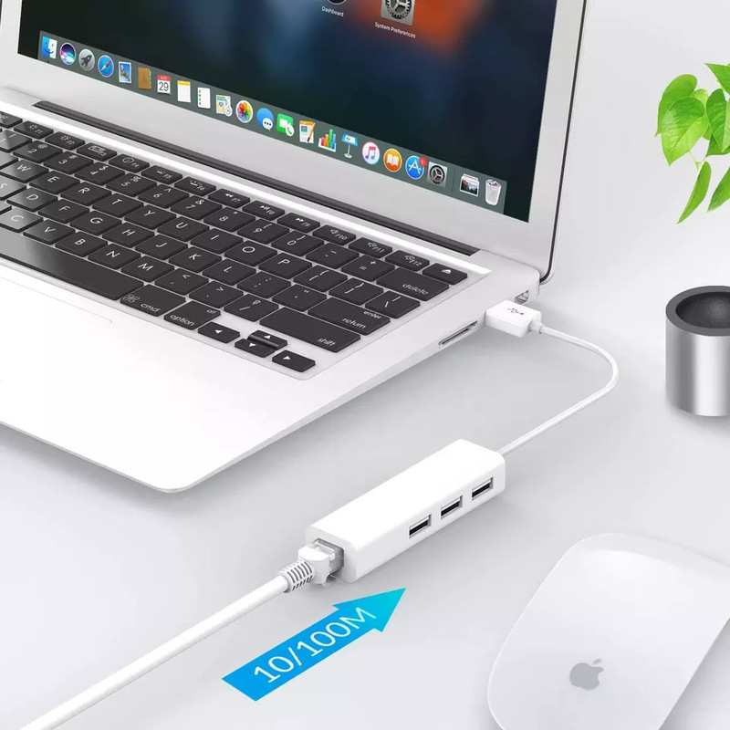 سه درگاه USB 2.0 | درگاه RJ 45 | سرعت درگاه USB برابر 480 مگابیت بر ثانیه | سرعت درگاه شبکه 10/100 مگابیت بر ثانیه | سازگار با مک، ویندوز و لینوکس | دارای یک درگاه آداپتور برای تامین انرژی بیشتر