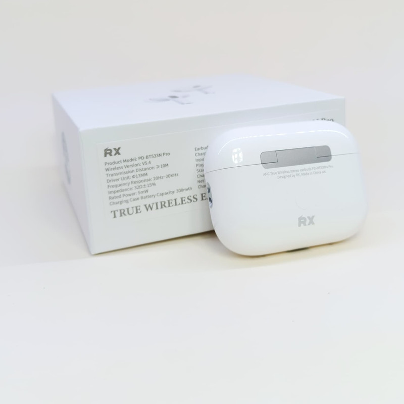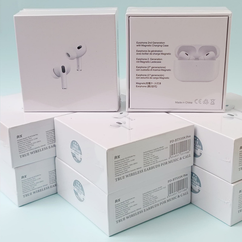 دو عدد گوشی بیسیم هوشمند لمسی (دارای حسگر قرارگیری در گوش) کیس شارژ لمسی (دارای اسپیکر با قابلیت شارژ بیسیم وایرلس) چهار نوع گوشی سیلیکونی ضد حساسیت (سایز: بسیار کوچک (XS)، کوچک (S)، متوسط (M)، بزرگ (L)) کابل شارژ لایتنینگ به USB Type-C دفترچه راهنما