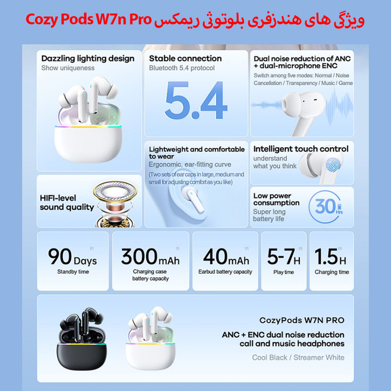 هدفون بلوتوثی ریمکس مدل Cozy Pods W7n Pro