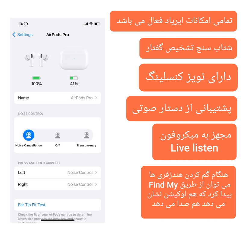 امکان استفاده از find My برای پیدا کردن مکان ایرپاد و امکان ایجاد صدا برای پیدا کردن