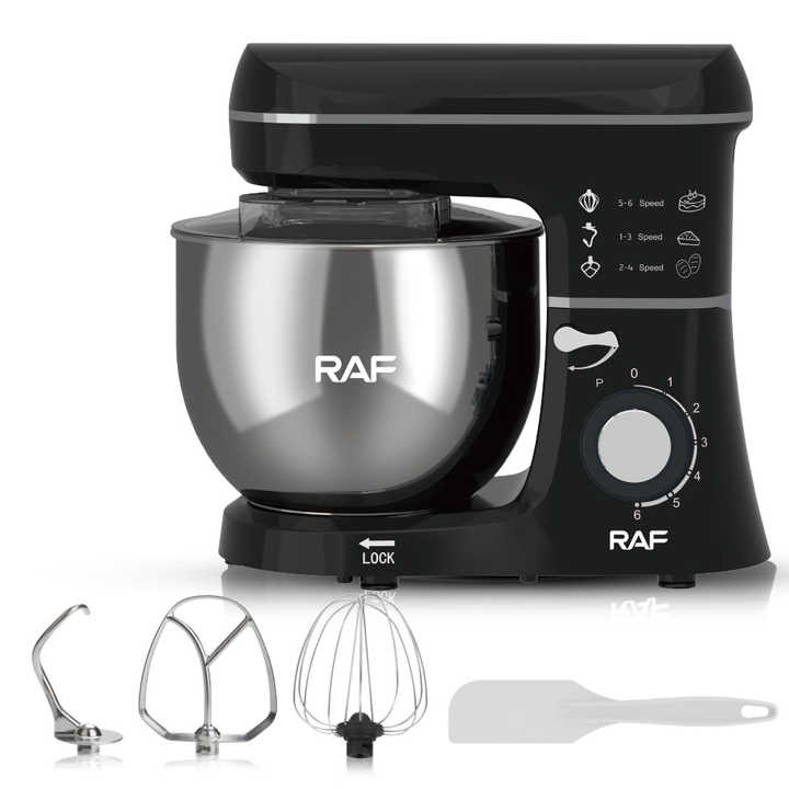 سوئیچ 6 سرعته با نشانگر نور بصری و هنری تر • همزن سیمی: به شکلی است که سفیده تخم مرغ/خامه یا سایر مواد را به طور کامل هم بزنید. • همزن مسطح: این است که همه انواع مواد مانند سالاد، شیک، کوکوتل یا سایر مایعات و غیره را کاملاً مخلوط کنید. • قلاب خمیر: می تواند آرد را 196 بار در حالی که با زاویه 360 در حال اجرا است مخلوط کند (1 چرخه) می تواند آرد را انعطاف پذیرتر کند.