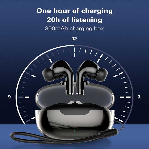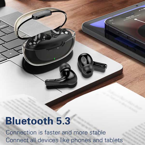 بلوتوث ورژن 5.3/ظرفیت باتری باکس 300 mAh/پخش HD صدا/درگاه شارژ کیس Type C/دارای دکمه لمسی/ظرفیت باتری هر یک از گوشی ها 30 mAh/مدت زمان پخش 4 ساعت/حداکثر مسافت جوابدهی بیسیم 10 m/زمان شارژ کامل 1 ساعت