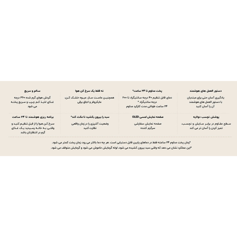 دارای برنامه سرخ کردن، پختن، خشک کردن میوه /