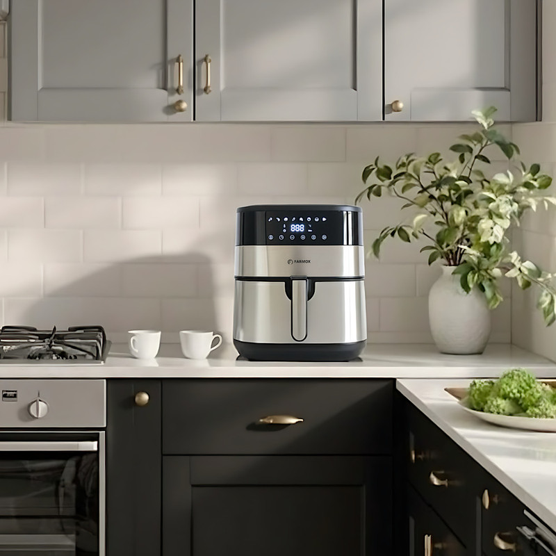 هواپز ۸ لیتری فارموکس با توان بالا و ضرفیت بالا به راحتی امکان پخت کامل در زمان کوتاه را فراهممیکند ، و دارای دو المنت میباشد ، بدنه داخل هواپز نیز از ورق فلزی ساخته شده است ، همچنین این مدل بر روی دوشاخه برق یک فیوز حفاظتی قرار دارد تا در نوسانات برق به دستگاه اسیب نرسد