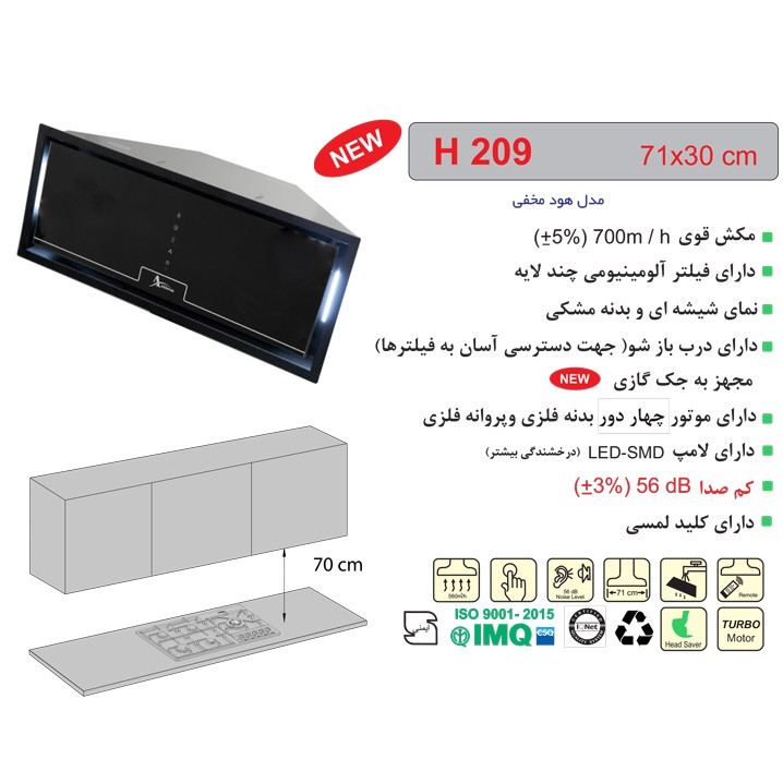 سایز هود: طول: 71 سانتی متر عرض: 30 سانتی متر
