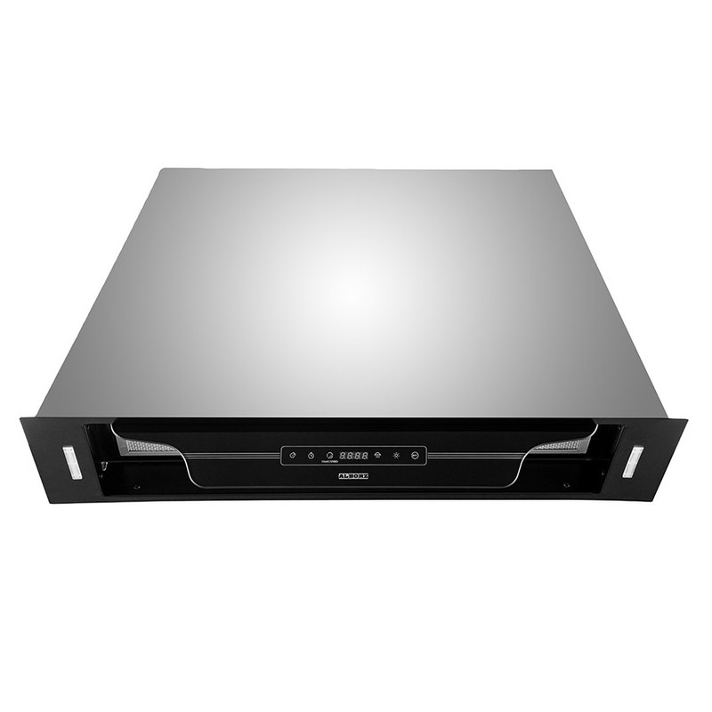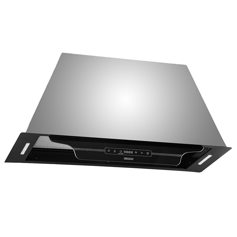 سایز هود: طول: 70 سانتی متر عرض: 28.7 سانتی متر ارتفاع: 34.7 سانتی متر - ابعاد برش: طول 680 میلی متر – عمق 265 میلیمتر - موتور: توربو با 3 دور - رنگ: مشکی و استیل - جنس فیلتر: آلومینیومی چند لایه قابل شستشو - قدرت مکش: 300 تا 800 متر مکعب - میزان صدا: 45 تا 50 دسیبل - صفحه کنترل: لمسی - کنترل از راه دور: دارد - سنسور دور: دارد - سنسور حرارت: دارد - نوع جک: لولا مفصلی - روشنایی: 2عدد لامپ SMD - قابلیت نصب فیلتر کربنی: ندارد