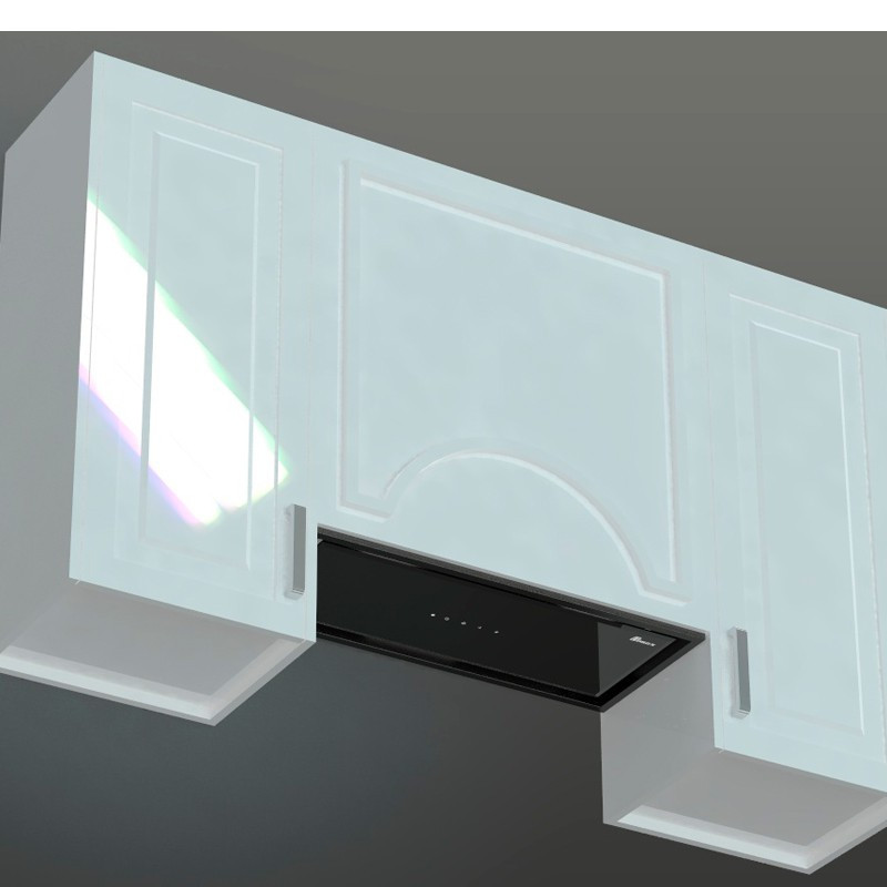 بدنه فولادی مشکی و شیشه سکوریت/کلید لمسی/3عدد لامپ کم مصرف SMD/موتور فلزی مجهز به تایمر/ریموت کنترل/جک گازی /قدرت مکش 700متر مکعب برساعت /ابعاد برش 28x68 سانتیمتر