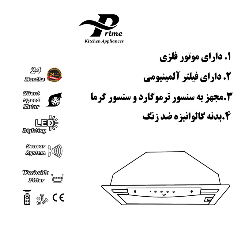 هود مخفی پرایم مدل لبخند ht500 سایز 70
