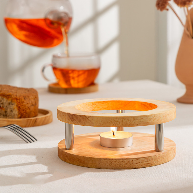 ساختهشده از چوب طبیعی با روکش روغن گیاهی و پایههای استیل ضدزنگ؛ زیبا، مقاوم و کاربردی. به همراه یک شمع وارمر رایگان، مناسب برای گرم نگه داشتن چای، قهوه و دمنوش.