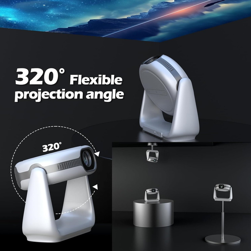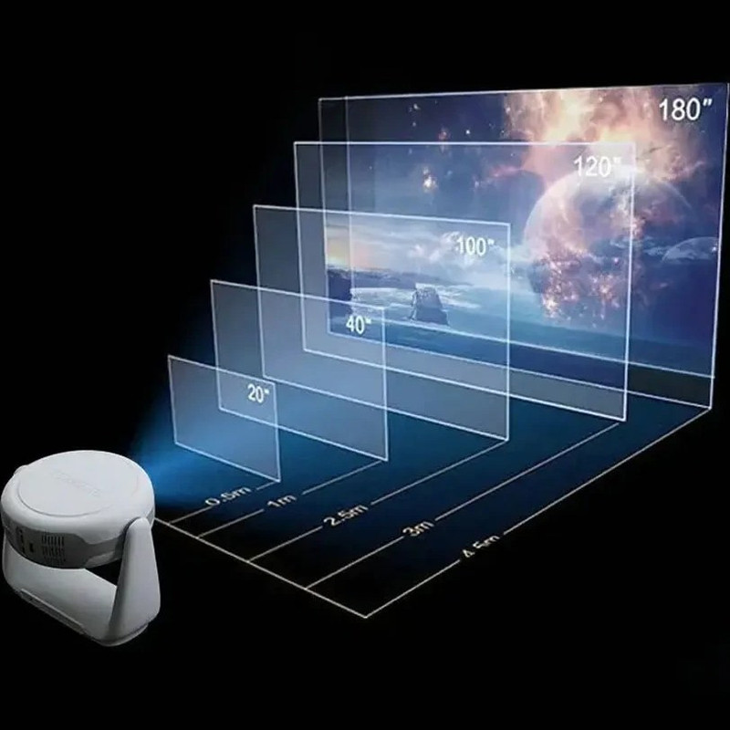 قابلیت فکوس خودکار باطری داخلی پخش تا 2.30 ساعت ویدیو و 20 ساعت موزیک اندروید 11، لنز سه قطعه شیشه برای وضوح بالاتر ،دارای اسپیکر داخلی خروجی AUX , ورودی USB دارای چراغ خواب