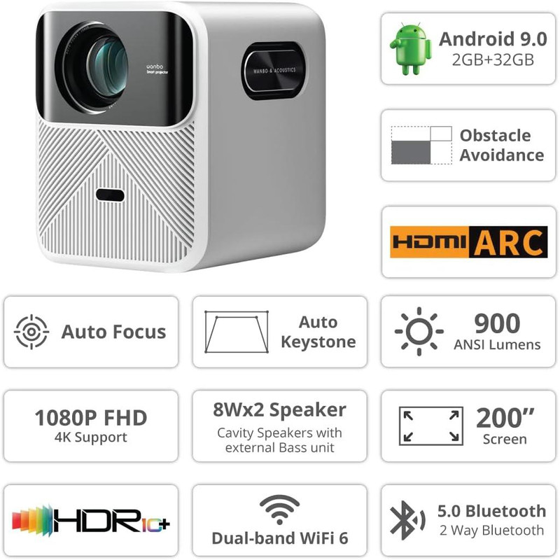 بسته شامل خود پروژکتور Wanbo Mozart 1، کابل کشی لازم، و همچنین یک کنترل از راه دور یا دستورالعمل های مختصر برای استفاده، به طور سنتی به زبان انگلیسی است.