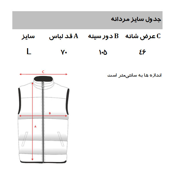 لایه میانی جلیقه از الیاف گرم پر شده است که باعث حفظ دمای بدن و جلوگیری از نفوذ سرما میشود
