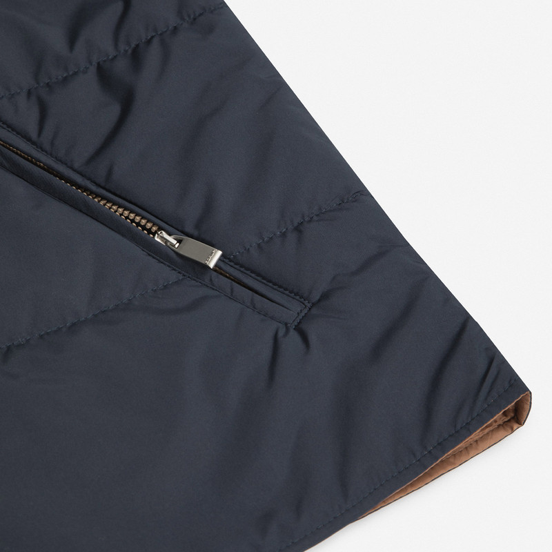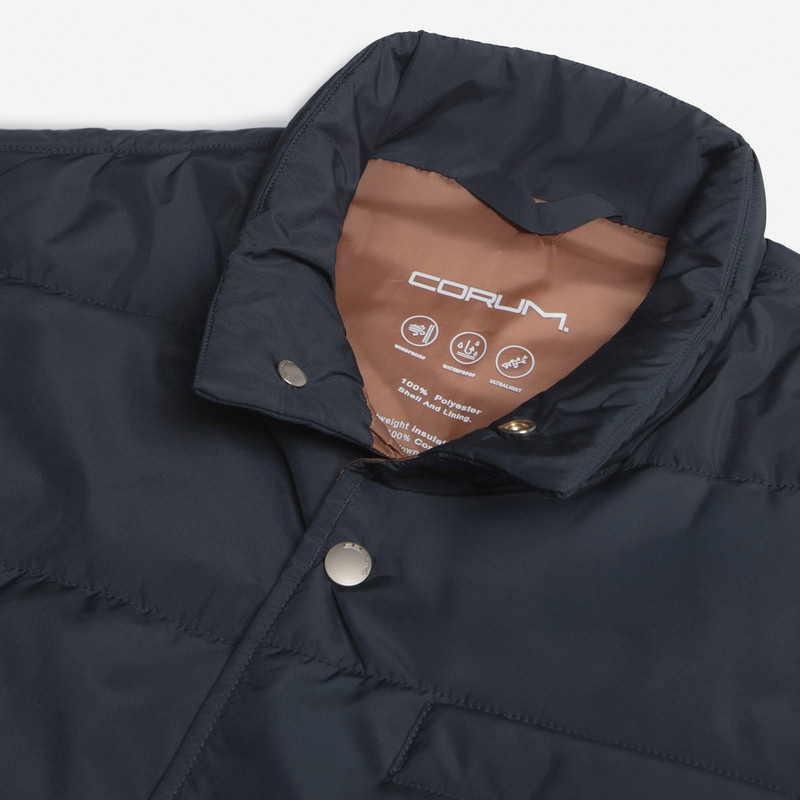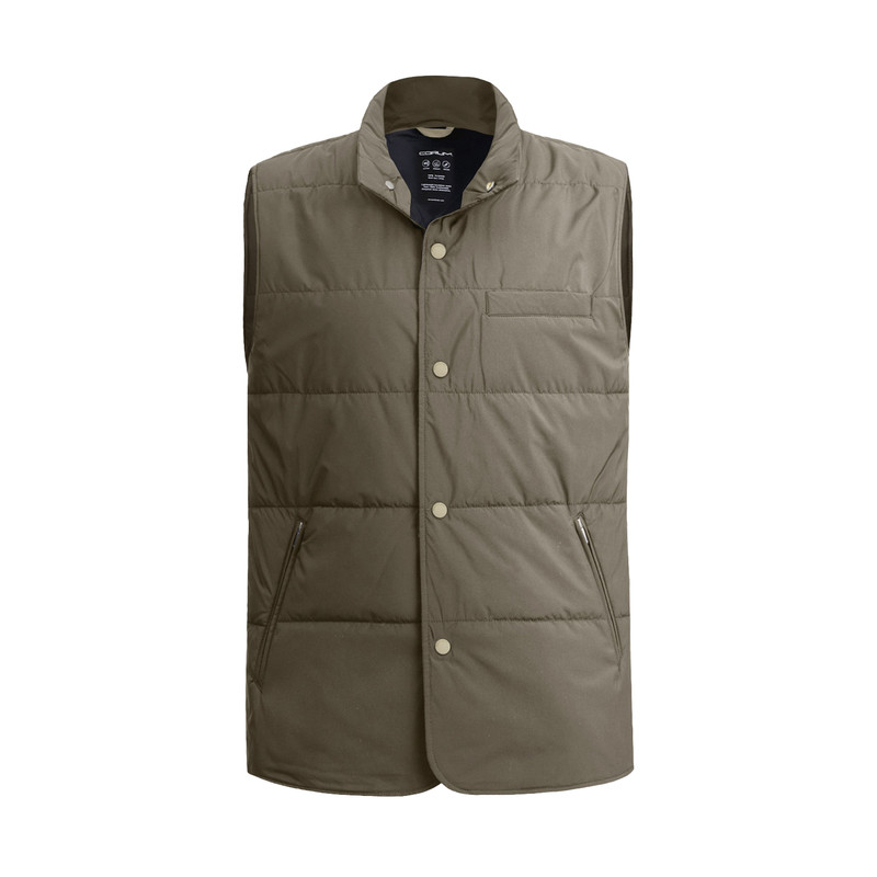 ژیله کاپشنی دکمه پرچی، الیاف بسیار سبک، پارچه ضد نفوذ آب و باد، دارای یک لایه پشم شیشه داخلی، آستر داخلی ضد آب، دارای سه جیب بیرونی و یک جیب داخلی