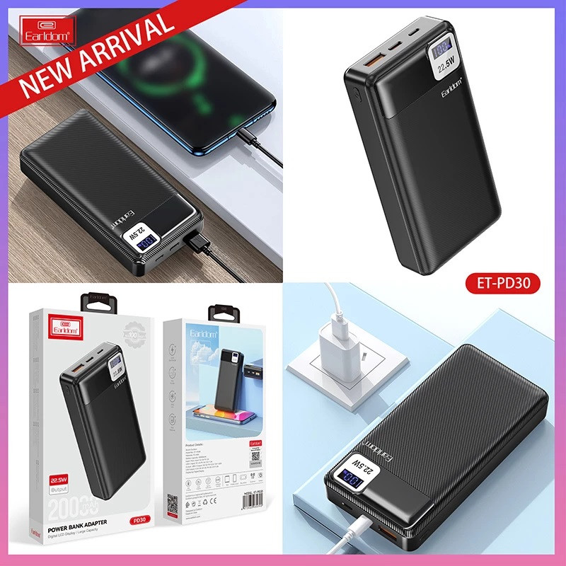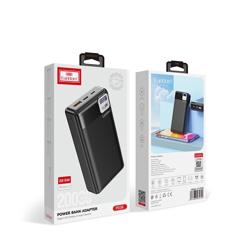 پاوربانک ارلدام مدل ET-PD30 ظرفیت 20000 میلی آمپر ساعت
