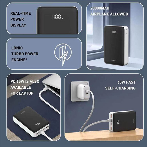 پاوربانک الدینیو مدل PQ27 ظرفیت 20000 میلی آمپر ساعت