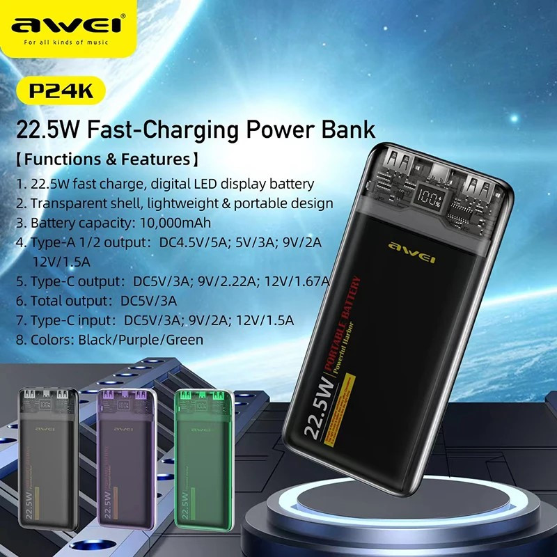 پاوربانک اوی مدل p24k ظرفیت 10000میلی امپر ساعت