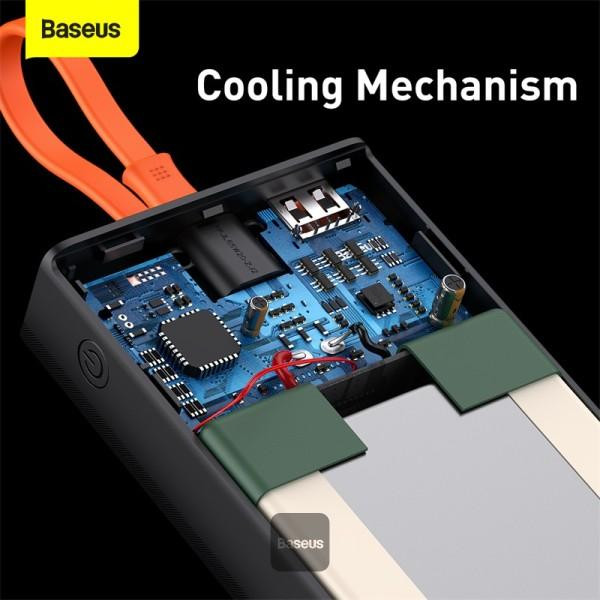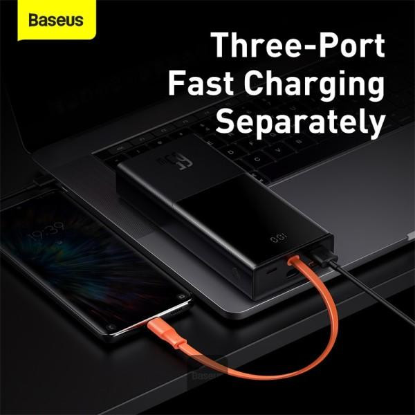 یک کابل نارنجی رنگ به پاوربانک 20000 بیسوس Elf متصل است که از نوع Type-C میباشد. قابلیت مهم این کابل این است که علاوه بر شارژ کردن خود پاوربانک (ورودی)، میتواند گوشی شما را هم شارژ کند (خروجی). شارژپاوربانک با یک آداپتور مناسب تنها 90 دقیقه طول میکشد.