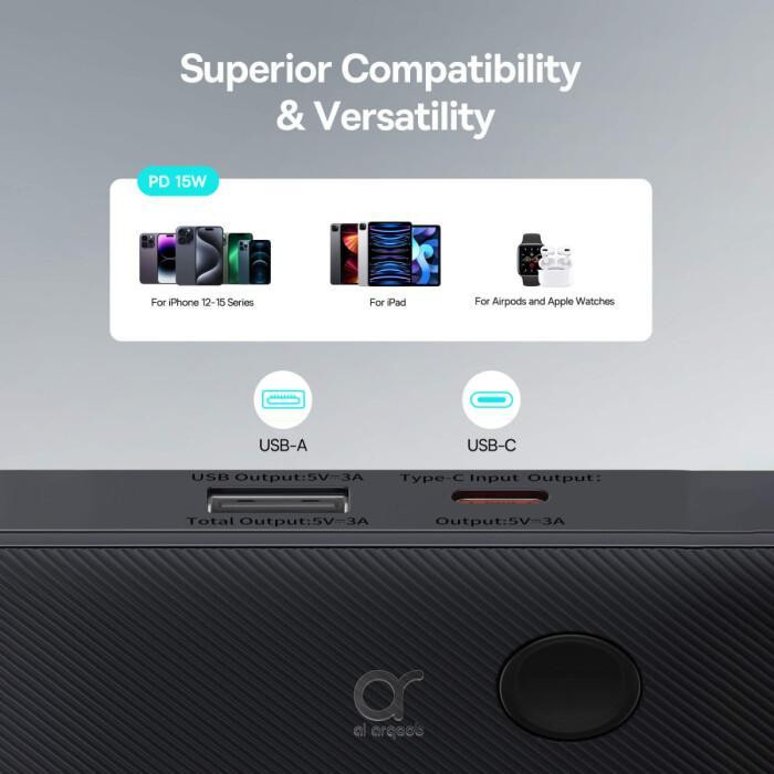 قابلیت شارژ آیفون 15 پرو مکس تا 1.8 بار، دستگاههای اندرویدی تا 1.4 بار و آیپد پرو تا 0.9 بار.