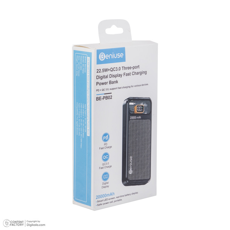پاوربانک بنیوس مدل BE-PB02 ظرفیت 20000 میلی آمپر ساعت