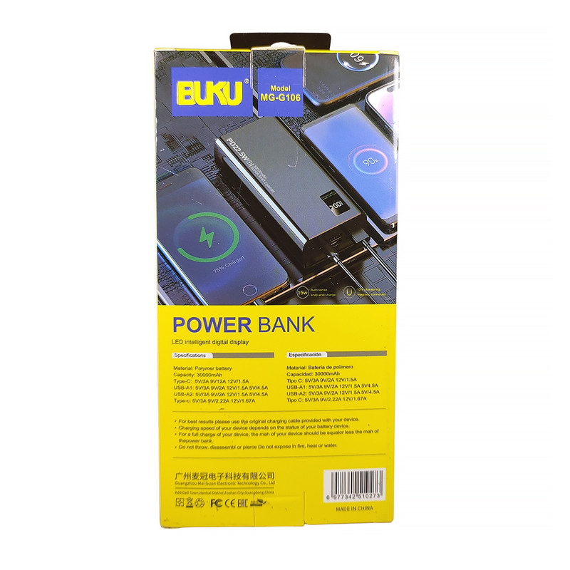 پاوربانک بوکو مدل MG-G106 ظرفیت 30000 میلی آمپر ساعت