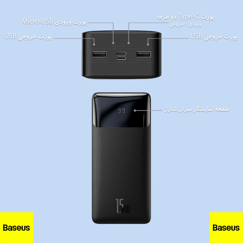 پاوربانک بیسوس مدل Bipow Digital ظرفیت 30000 میلی آمپر ساعت