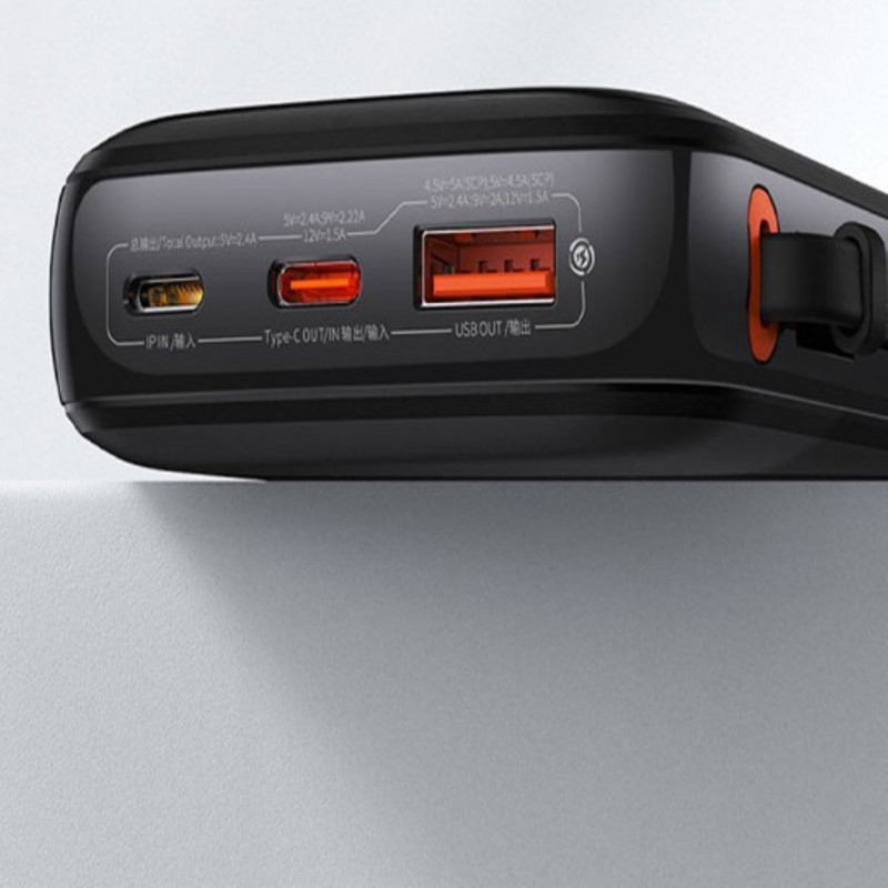 شدت ورودی آیپی:5V/2A و ورودی تایپ سی:5V/2.4A; 9V/2A; 12V/1.5A بوده و شدت خروجی تایپسی:5V/2.4A; 9V/2.22A; 12V/1.5A و خروجی یواسبی:4.5V/5A(SCP); 5V/4.5A(SCP); 5V/2.4A; 9V/2A; 12V/1.5A و خروجی کابل لایتنینگ 5V/2.4A; 9V/2.22A میباشد.
