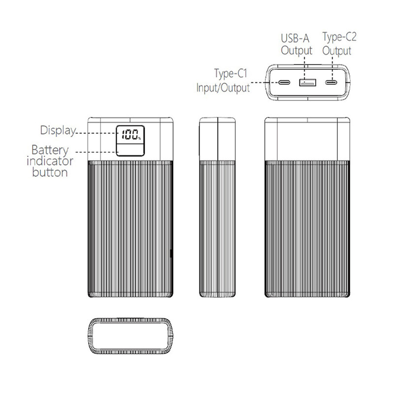 درگاه Type-C1/C2 حالت خروجی: 5 ولت 3 آمپر / 9 ولت 2.22 آمپر / 12 ولت 1.67 آمپر /