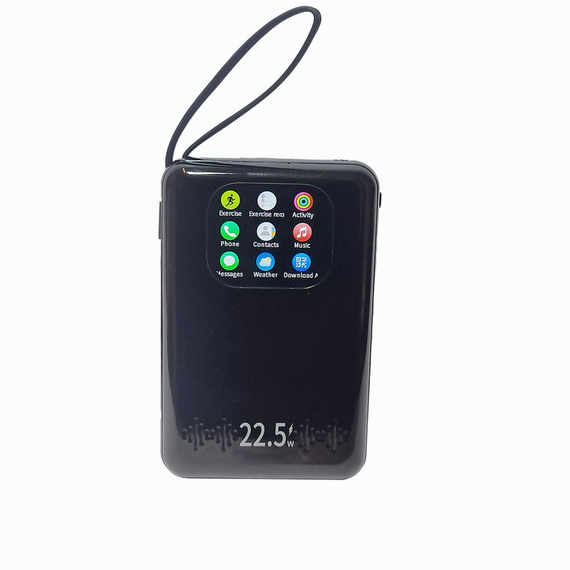 پاوربانک هوشمند مدل Gs wear M2 تلفیقی از پاوربانک و ساعت هوشمند و اسپیکر میباشد این گجت دارای پاوربانک فست شارژ با ظرفیت 10 هزار میلی آمپر میباشد که تمامی کابل شارژها از جمله میکرو ،تایپ سی و لایتنیگ برای شارژ انواع گوشی روی خود دارد و شما را از هرگونه کابل شارژ بی نیاز میکند . علاوه بر این دارای یک اسپیکر با حجم صدای خوب میباشد که برای دورهمی های کوچک مناسب است و صفحه نمایش آن لمسی بوده و تمام قابلیت های ساعت هوشمند را دارا میباشد از جمله اتصال به گوشی از طریق بلوتوث و برقراری تماس و مکالمه ،نمایش اعلانات گوشی روی صفحه ، پشتیبانی از زبان فارسی ، قابلیت قرار دادن عکس دلخواه روی صفحه نمایش ، ضبط صدا ، گالری تصاویر ، موزیک پلیر میباشد این گجت دارای حافظه داخلی بوده که میتوانید عکس و موزیک از طریق گوشی به آن منتقل کنید یک چراغ قوه کوچک نیز در بالای این گجت تعبیه شده که در مواقع ضروری میتوانید از نور آن استفاده کنید.