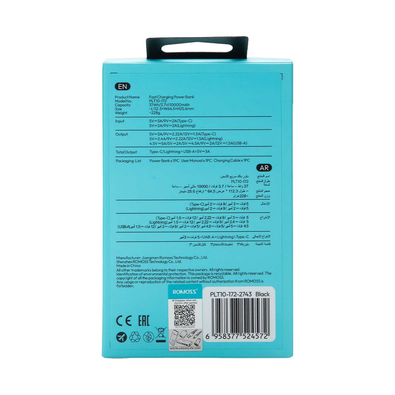 پاوربانک روموس مدل PLT10-172 ظرفیت 10000میلی آمپرساعت