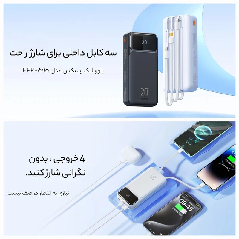 پاوربانک ریمکس مدل 686 ظرفیت 20000 میلی آمپر ساعت