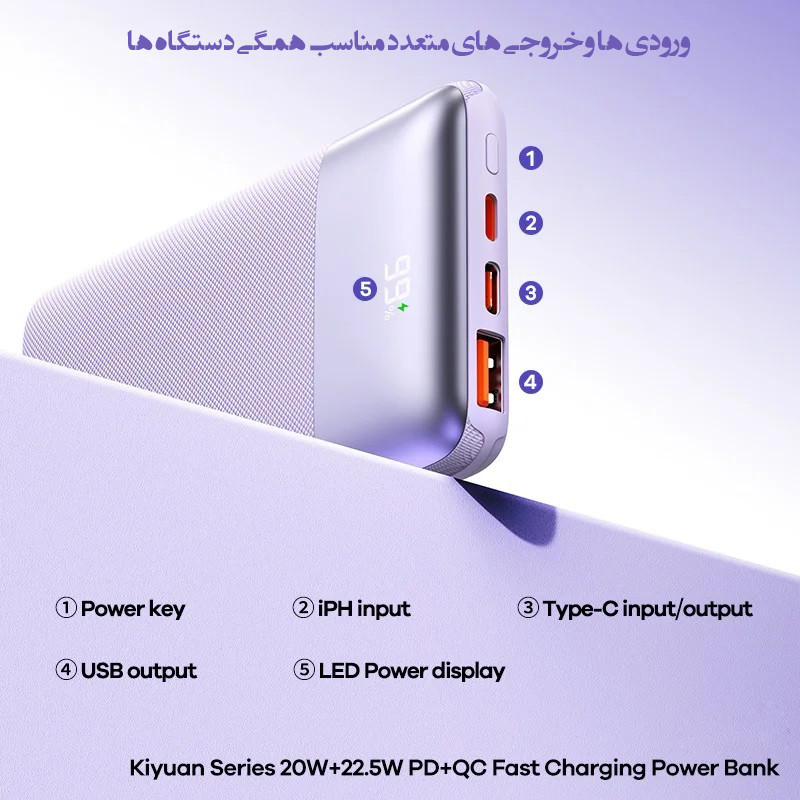 پاوربانک ریمکس مدل Fast Charge 22.5W Kiyuan ظرفیت 10000 میلی آمپر ساعت