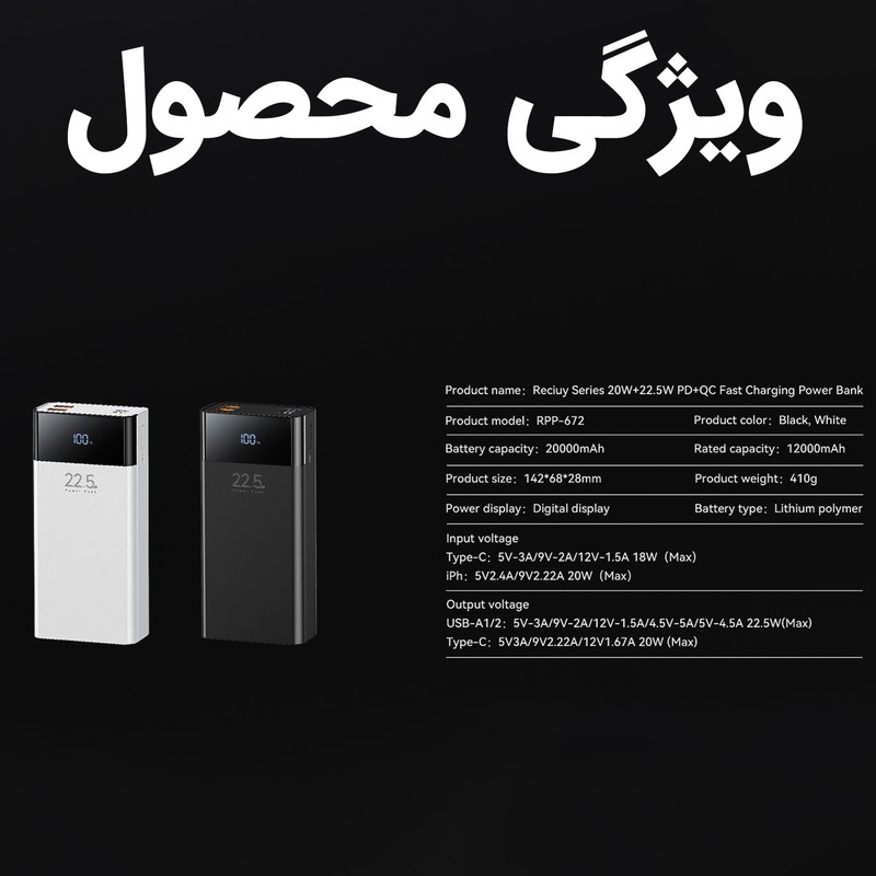 پاوربانک ریمکس مدل RPP-672 ظرفیت 20000 میلی آمپر ساعت