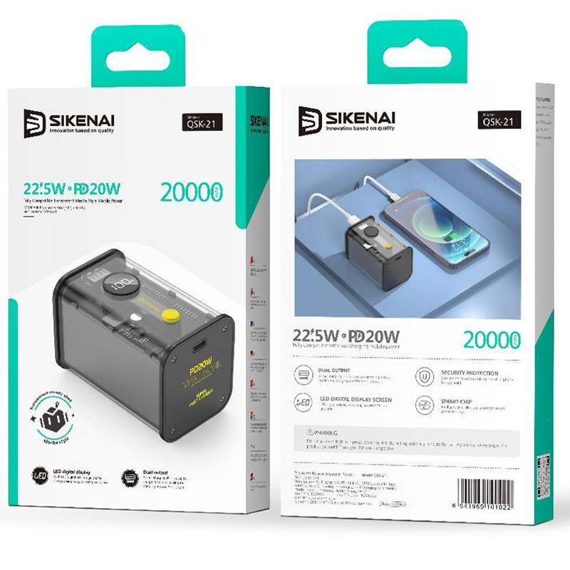 پاوربانک سیکنای مدل QSK-21 ظرفیت 20000 میلیآمپر ساعت