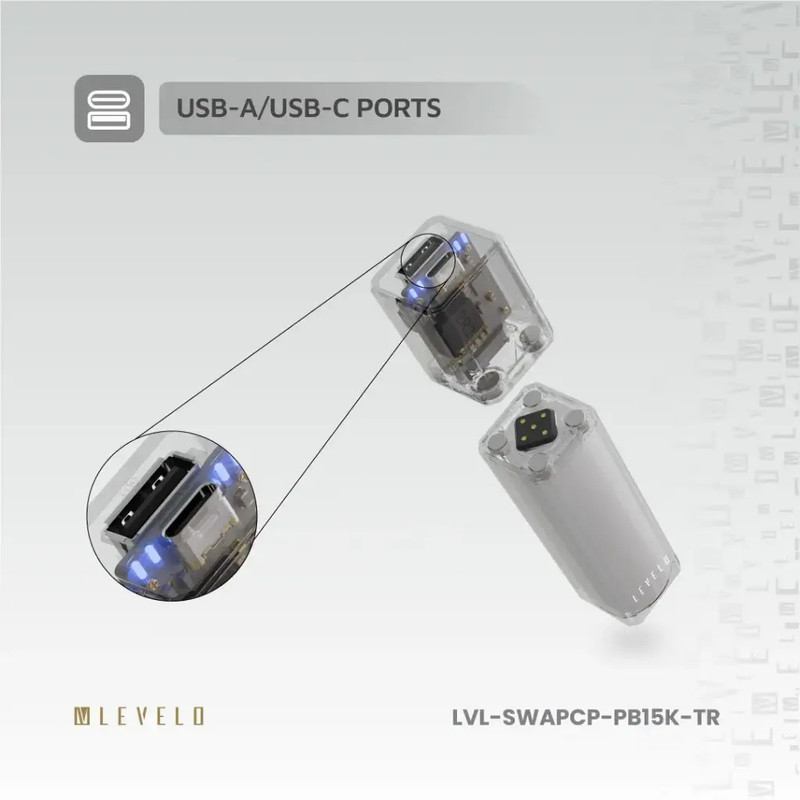 پاوربانک Levelo SwapCell PRO 15000mAh با لوازم جانبی شفاف، یک راهکار شارژ پیشرفته است که برای راحتی و تطبیقپذیری طراحی شده است. این پاوربانک مجهز به سه سلول باتری لیتیوم-یونی 5000 میلیآمپر ساعتی است که شارژ سریع و استفاده طولانیمدت را ارائه میدهد. این پاوربانک با داشتن پورتهای USB-A و Type-C، از خروجی تا 22.5 وات برای USB-A و 20 وات برای Type-C و شارژ سریع 18 وات از طریق ورودی Type-C پشتیبانی میکند. طراحی نوآورانه آن شامل یک سلول باتری با یک سر، به علاوه یک گزینه برای فندک ARC/چراغ قوه است. اتصال مغناطیسی قوی، تعویض آسان را تضمین میکند، در حالی که سرهای شارژ تکی و دوتایی، مدیریت کارآمد برق را فراهم میکنند. ایدهآل برای سفر و استفاده روزمره!