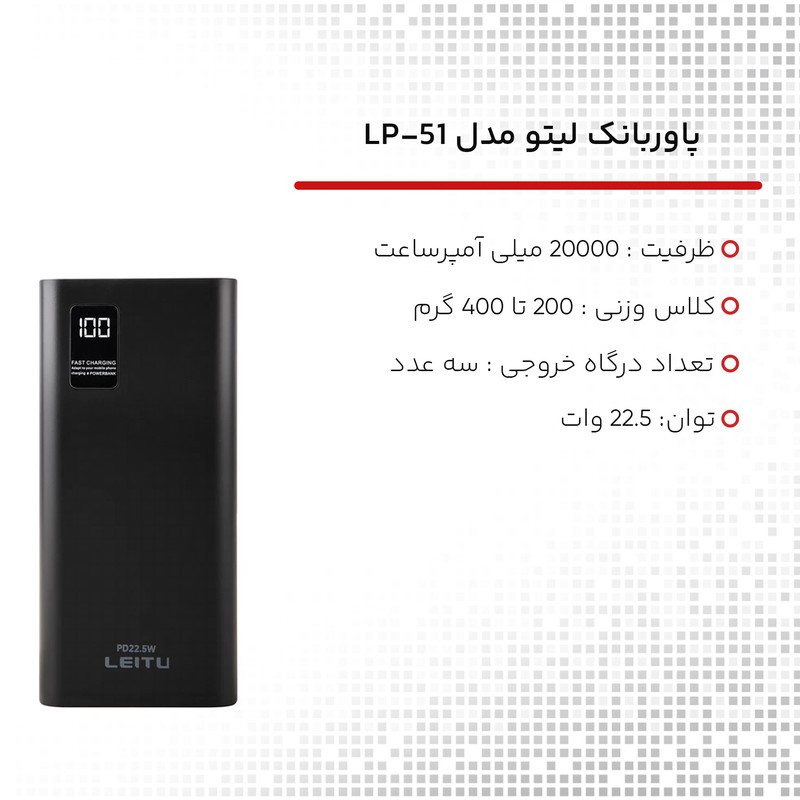 پاوربانک لیتو مدل LP-51 ظرفیت 20000 میلیآمپرساعت