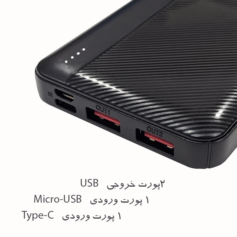 دارای یک پورت خروجی USB و پشتیبانی از انواع پروتکلهای شارژ - برخورداری از شارژ هوشمند و شارژ انواع گجتهای هوشمند مانند دوربین، تبلت، گوشی، و اسمارت واچ -دارای یک ورودی Type-c و یک Micro USB -دارای سیستم محافظت در برابر مشکلاتی مانند نوسانات برق، اتصال کوتاه، تغییرات دما، و جریان اضافی در ورودی و خروجی -خروجی ۵v وات با شدت جریان ۳A امپر -دارای قابلیت فست شارژ