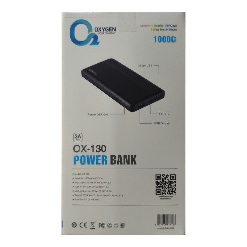 پاوربانک مدل OX 130 ظرفیت 10000 میلی آمپر ساعت