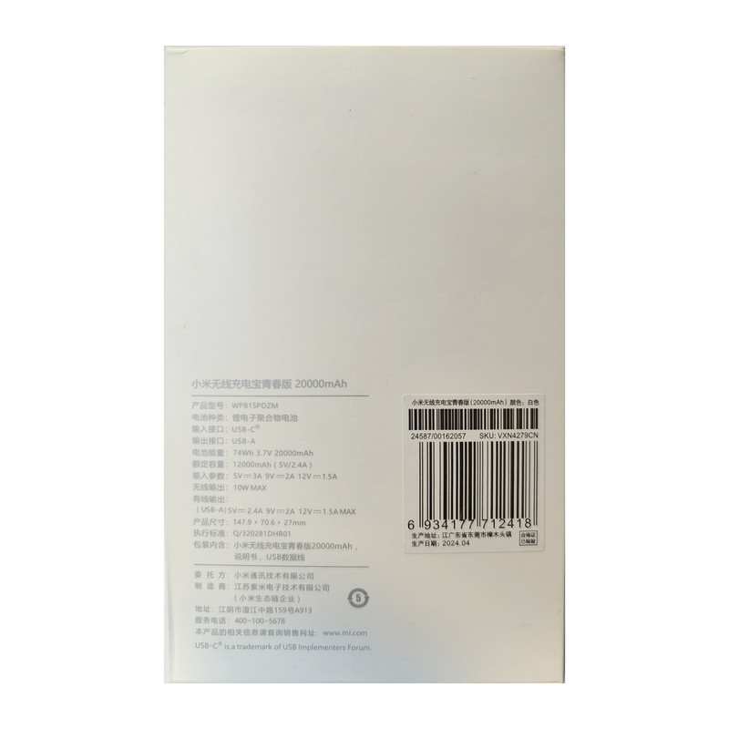 حداکثر توان خروجی: تا 10 وات | حداکثر آمپر خروجی: 3آمپر - 5 ولت | دارای 1 پورت خروجی USB | رابط ورودی: Type-C | قابلیت شارژ وایرلس