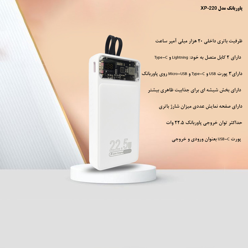 پاوربانک مدل XP220 ظرفیت 20000 میلی آمپر ساعت