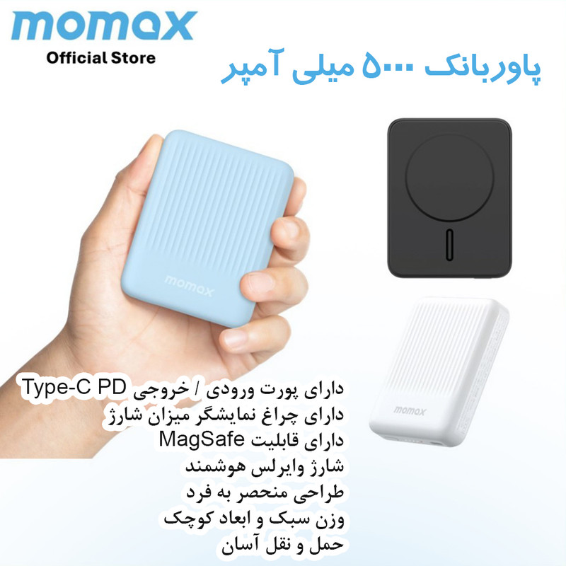 پاوربانک موماکس طرح مگ سیف مدل 122 ظرفیت 5000 میلی آمپر ساعت