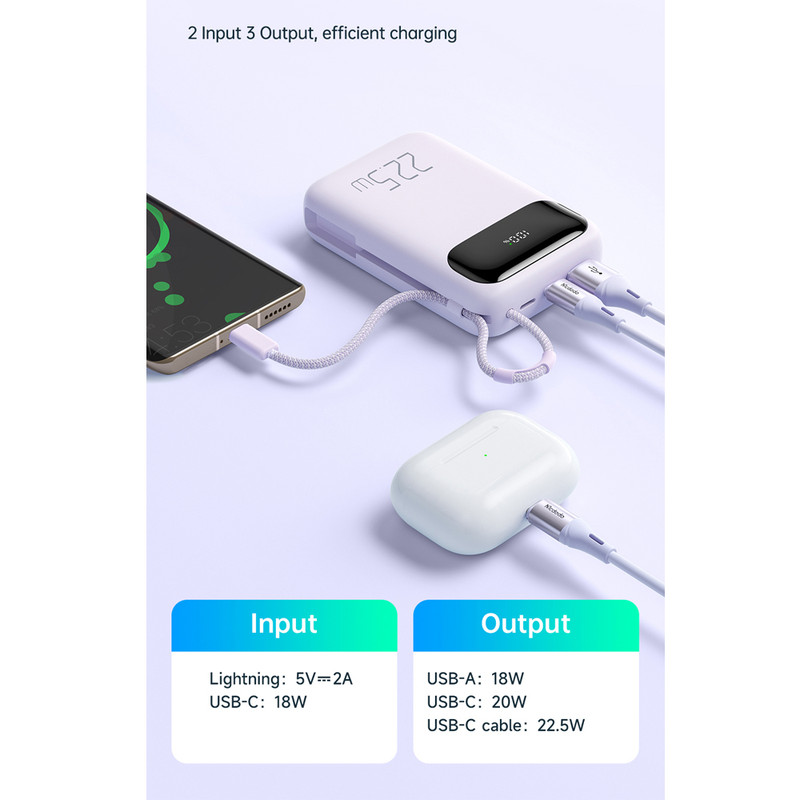 USB A output :5V-3A, 4.5V-5A, 5V-4.5A,9V-2A,12V-1.5A (USB-A),22.5W Max.