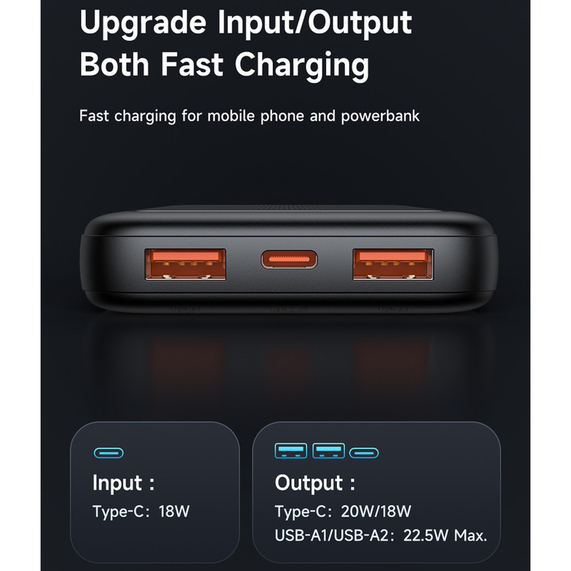 USB A1/A2 output : 4.5V⎓5A,5V⎓4.5A,5V⎓3A,9V⎓2A,12V⎓1.5A,22.5W Max.