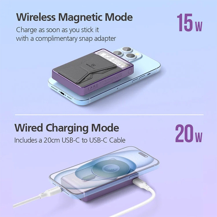 خروجی بی سیم USB-C+Watch: 5V/2A+5V/0.2A
