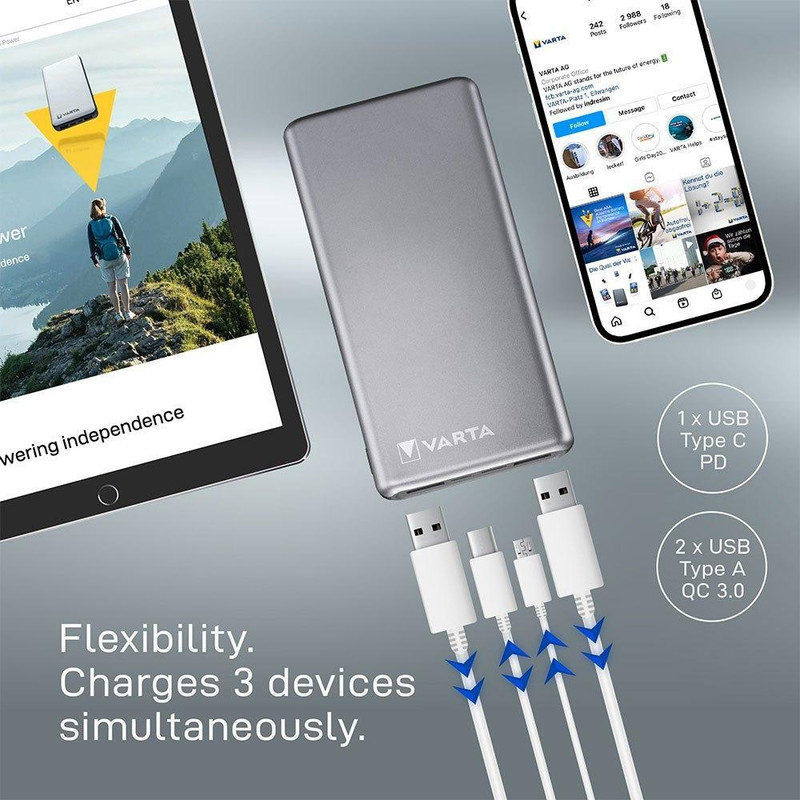 تلفن همراه هوشمند، تبلت، هندزفری بی سیم، ساعت های هوشمند و دیگر تجهیزات USB با استفاده از شارژر همراه وارتا قابل شارژ هستند.