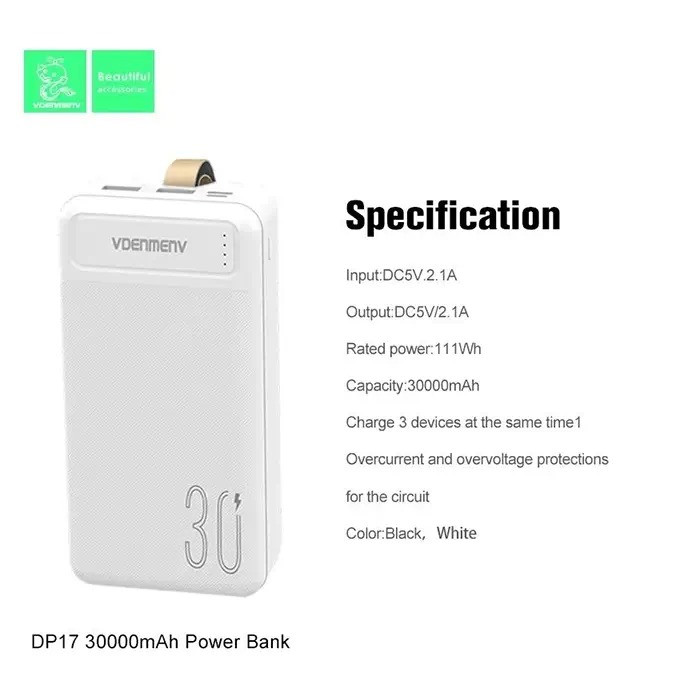 پاوربانک وی دنمن وی مدل DP17 ظرفیت 30000 میلی آمپر ساعت