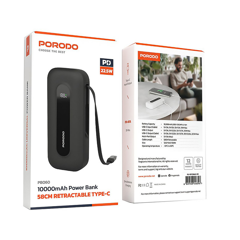 پاوربانک پرودو مدل 58 CM ظرفیت 10000 میلی آمپر ساعت