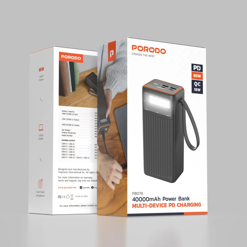 پاوربانک پرودو مدل PBCH078 با ظرفیت 40000 میلی آمپر ساعت