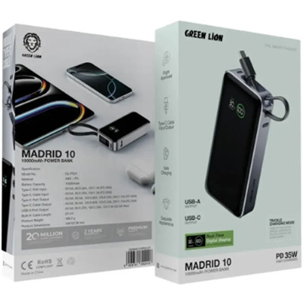 پاوربانک گرین لاین مدل مادرید با ظرفیت 10000 میلی آمپر ساعت